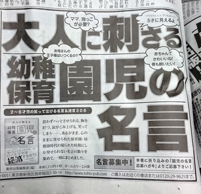 「赤ちゃんてかわいいね! 僕も飼いたい!」という言葉を読み、年齢的に、赤ん坊もペットと同じ感じなんだ、と改めて思ったのでありました。