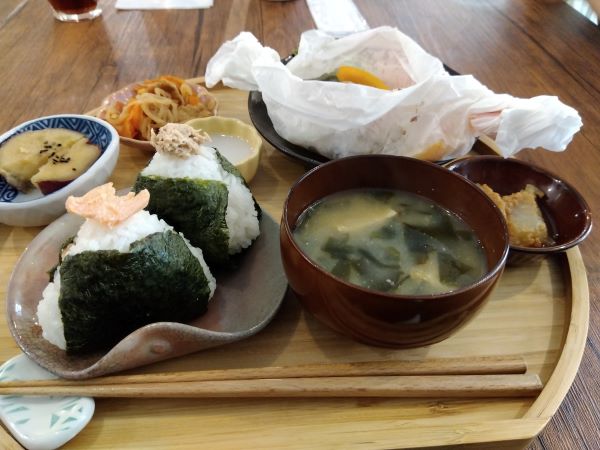 岡山の天満屋近くにある「おむすび食堂 昼の星」にて、発酵おむすびプレートをいただきました。