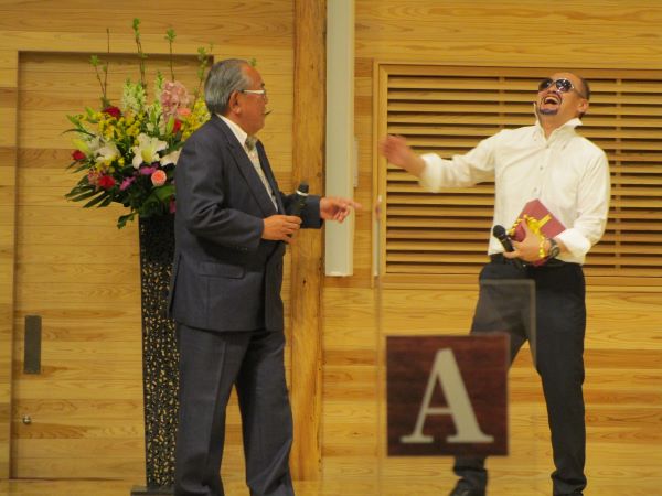 余興を披露してくださったMさんに、軽口をたたくガマさん。